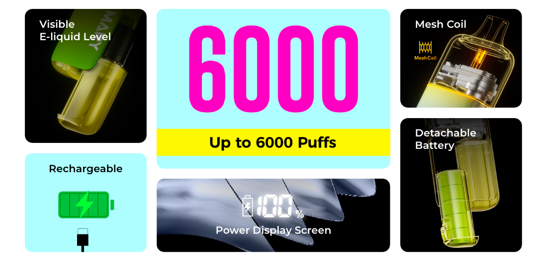 Up to 6,000 puffs per device ‒ this gives you significantly more usage than many standard disposables.